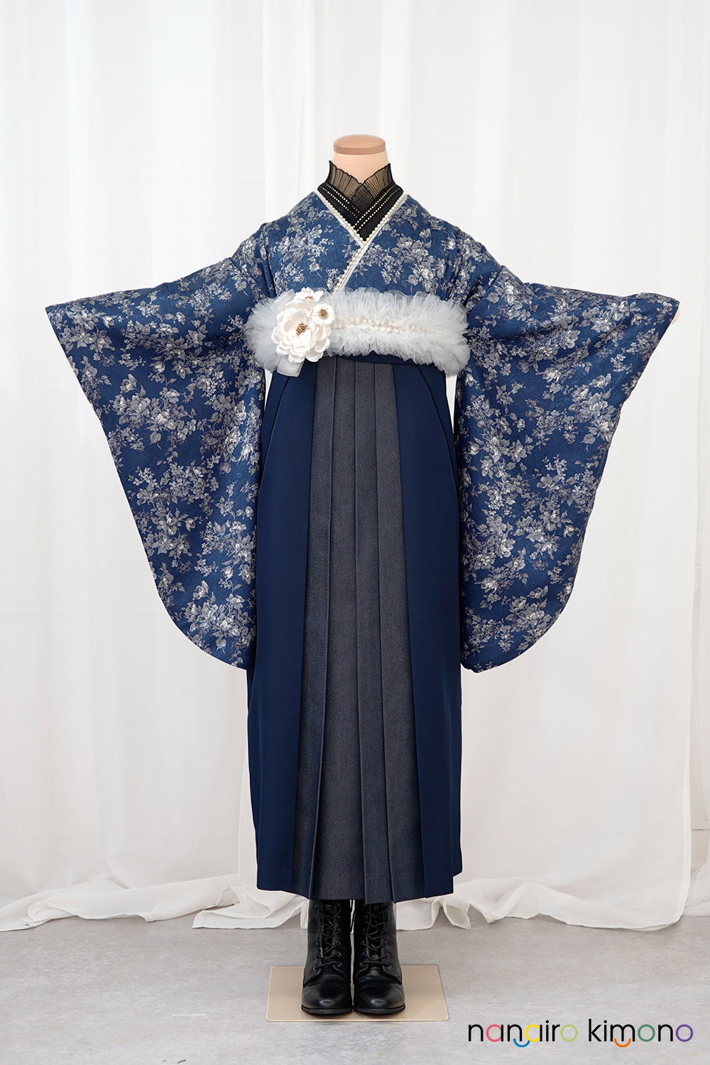 卒業式袴フルセット|青・紺色おしゃれ袴 2S215
