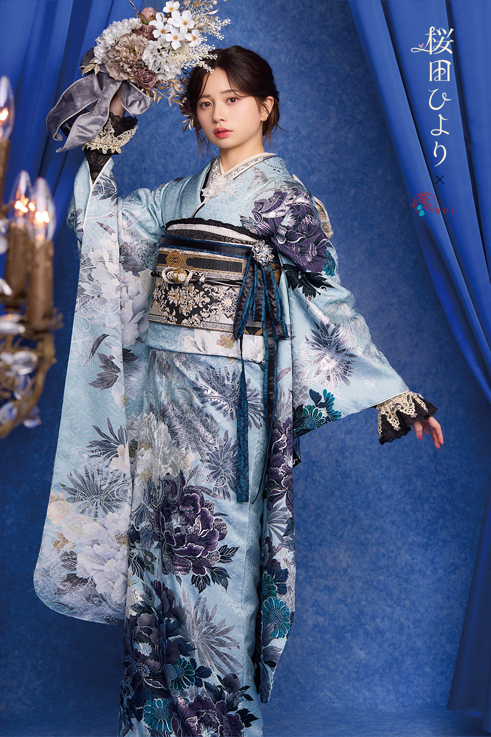 • 画像着用の帯・重ね衿・帯揚げ・帯締め・刺繍衿・草履バッグなどの小物類は撮影上のコーディネート例です。実際の商品にセットされている小物は画像と異なる場合がございます。
