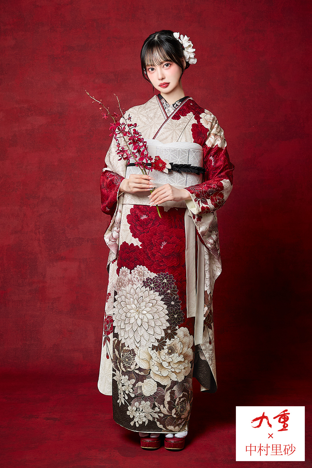 振袖 白・クリーム 赤・ピンク 九重×中村里砂