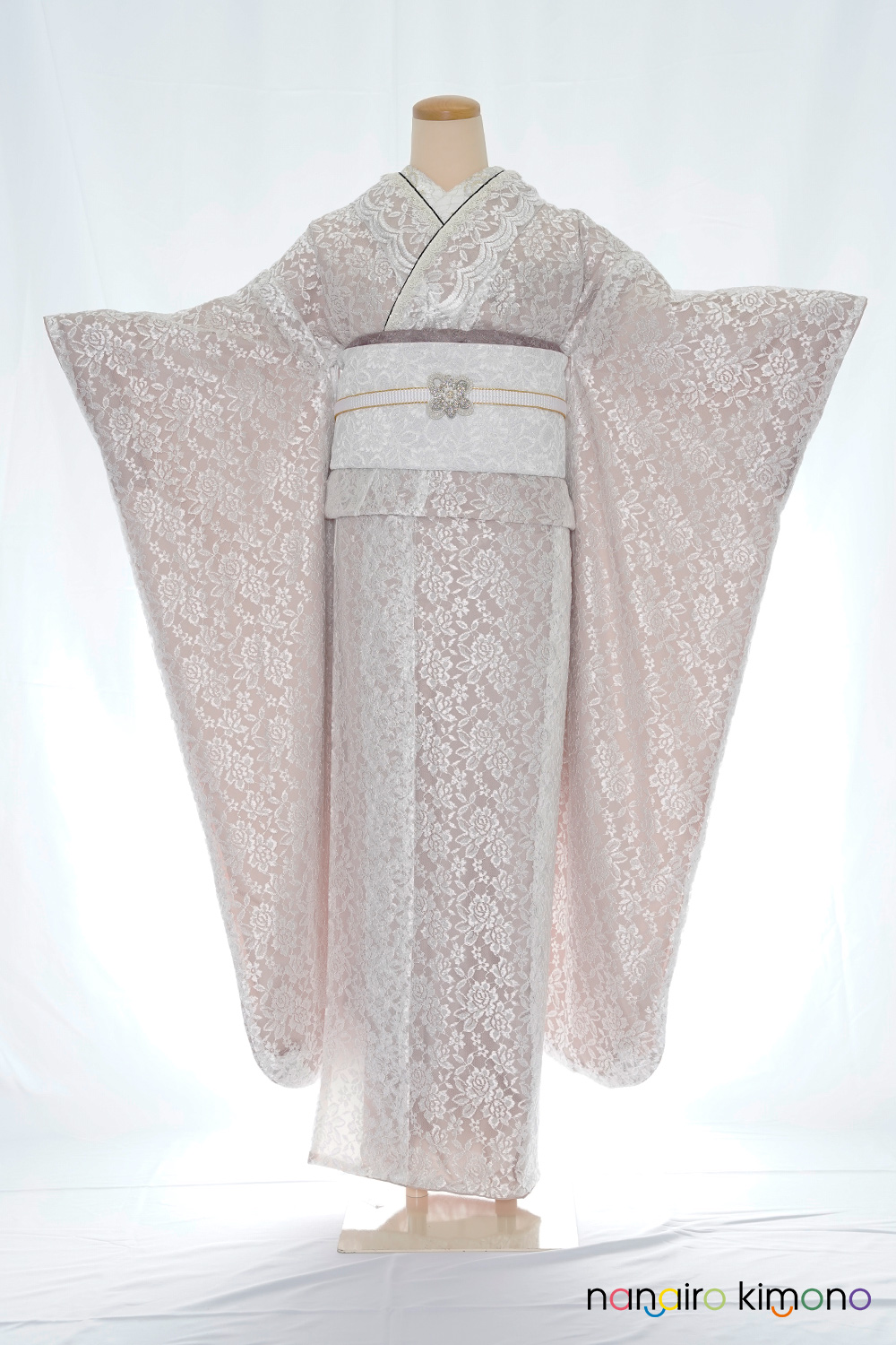振袖フルセット|ピンクベージュ色・レース生地 FP021