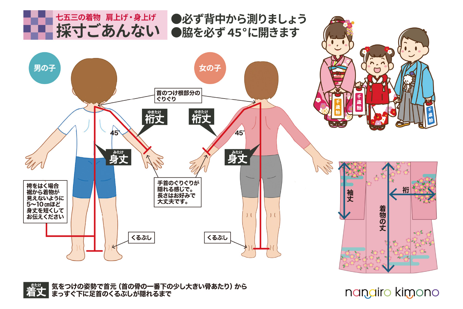 ※肩上げ・腰上げをご希望された方は、お子様の身丈・裄丈を備考欄にご記入いただくか、ご注文後にLINE公式アカウントまでご連絡ください。